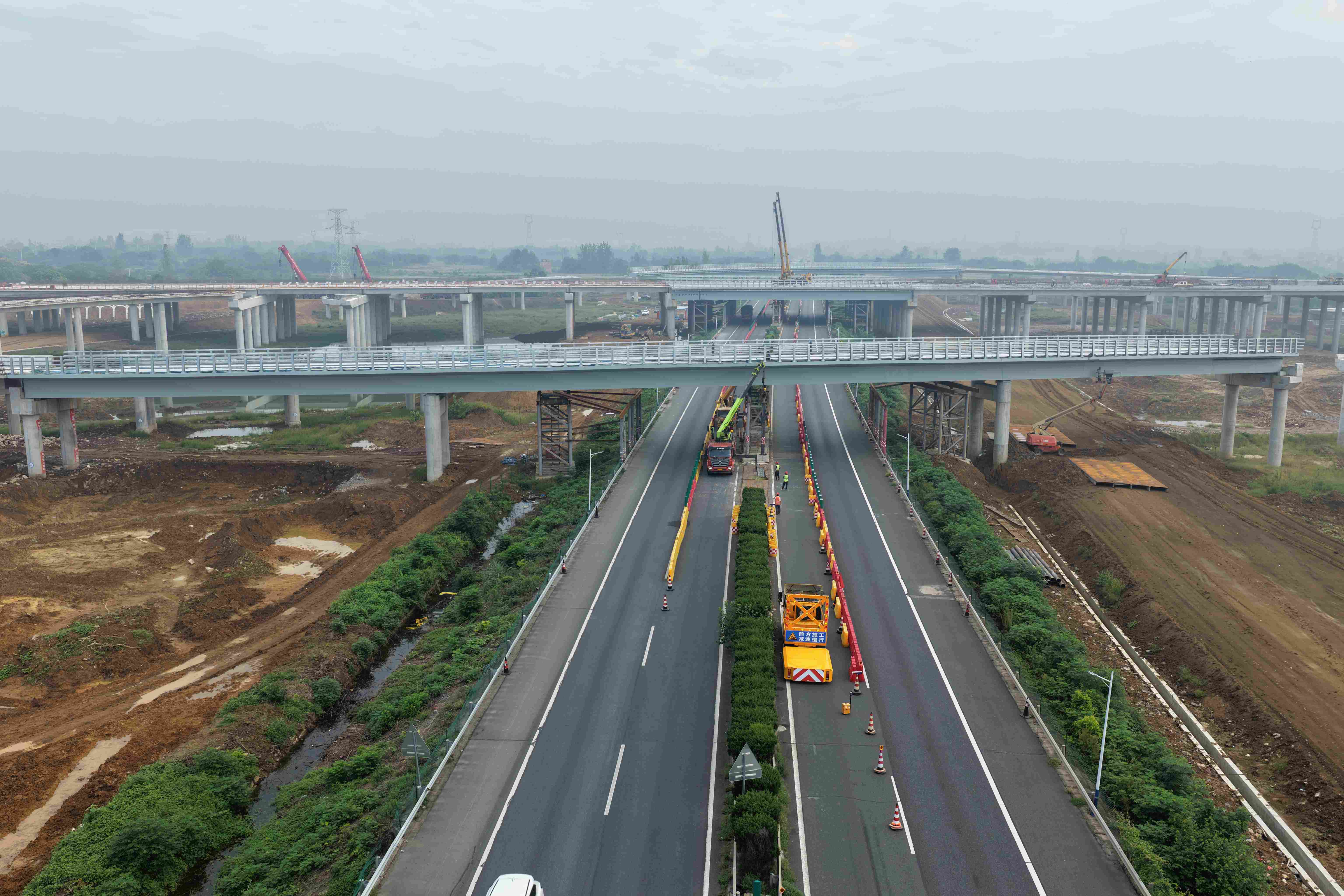 武荆宜高速荆门段三标段全长18.91公里,起于沙洋县曾集镇龚庙村,终于沙洋县五里铺镇严店村,本次首吊作业位于五里铺枢纽互通匝道桥。