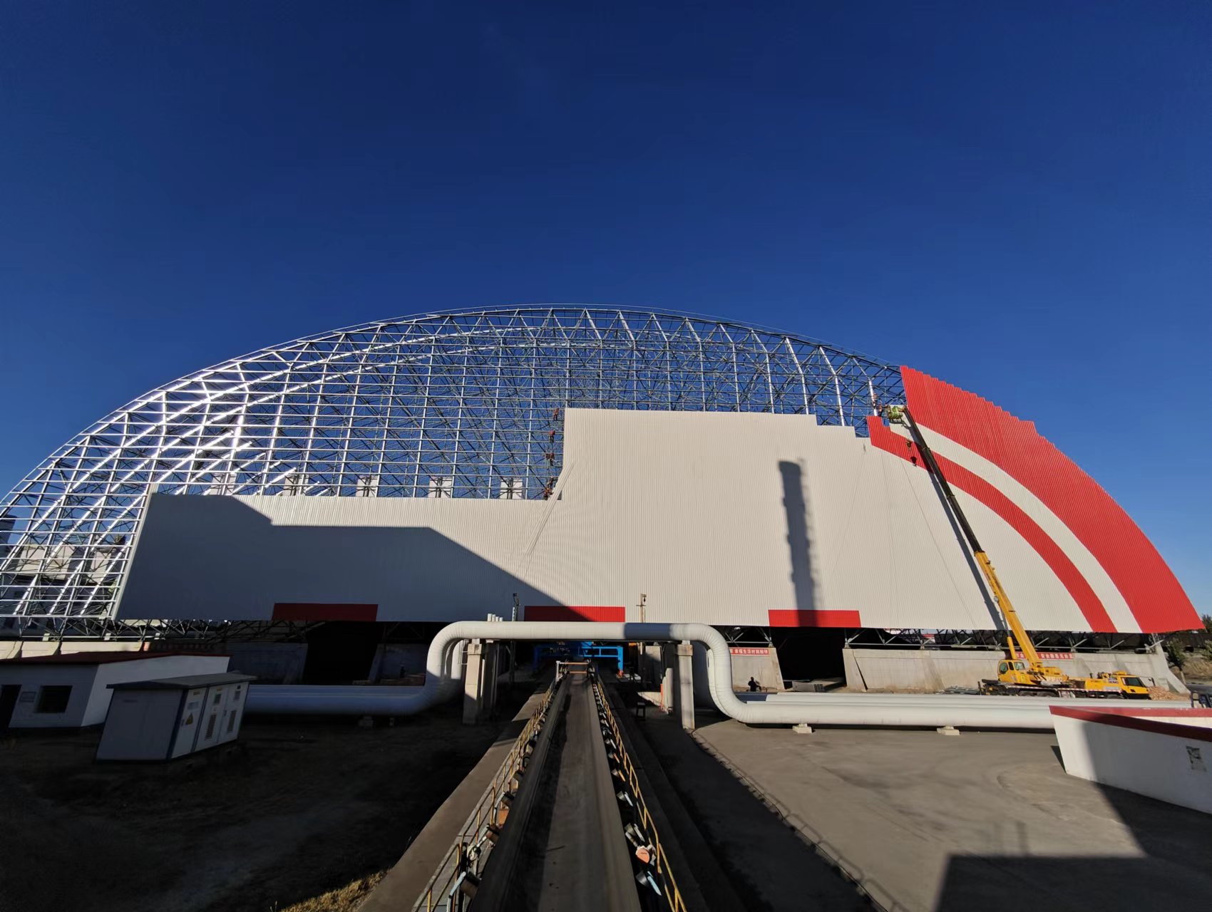 内蒙古京科发电有限公司科右中热电厂扩建工程封闭煤场PC工程跨度120m,长300m,宽120m,高30m,建筑面积36000㎡